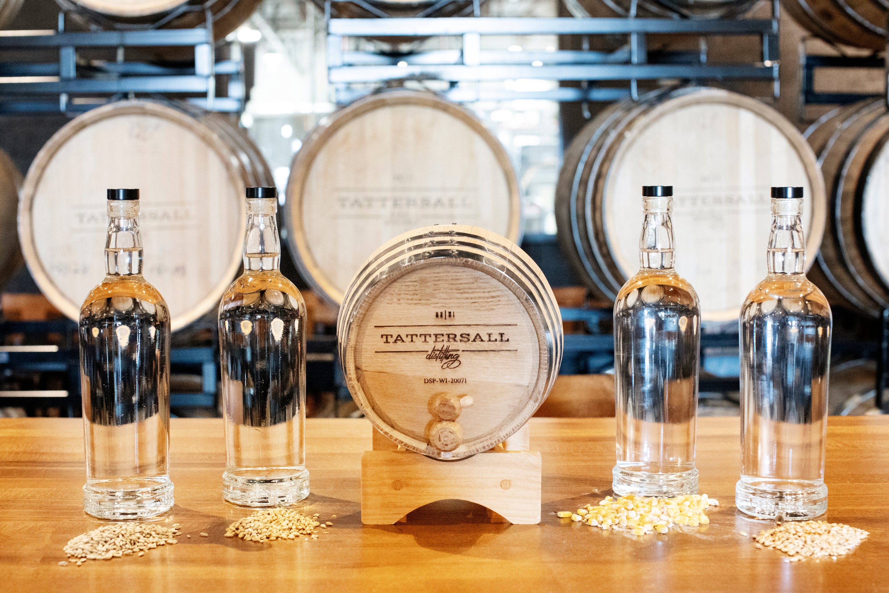 - Four 750 ml. bottles of 120-proof grain distillate. When you pick up your kit, you can choose your combination from a selection of corn, rye, malted barley and wheat. If you'd like, our team would be happy to make recommendations.